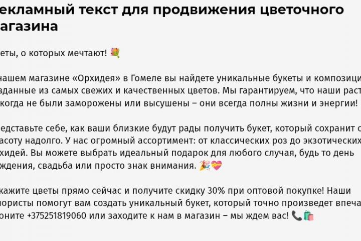 Рекламный текст для продвижения цветочного магазина