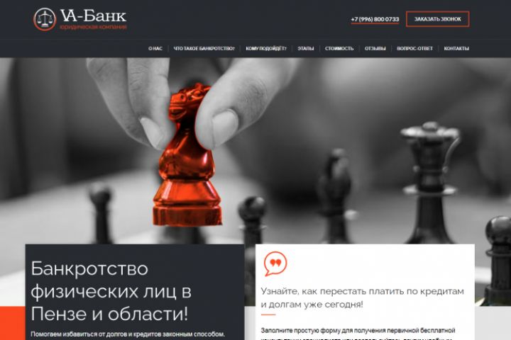 Разработка под ключ и оптимизация. Лендинг на заказ для юридической компании. Направление: Банкротство физических лиц. Гео: Пенза