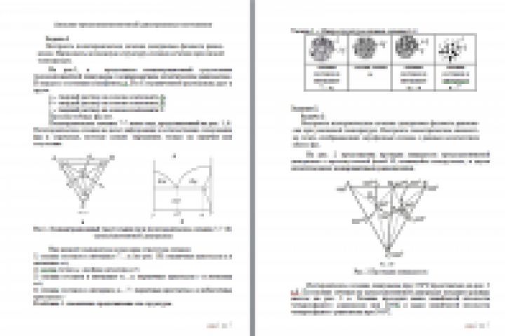 Анализ трехкомпонентной диаграммы состояния: анализ фазово-структурных превращений, построение полиморфного и изоморфного разреза, расчет структурных и фазовых составляющих. Работы была принята без нареканий.