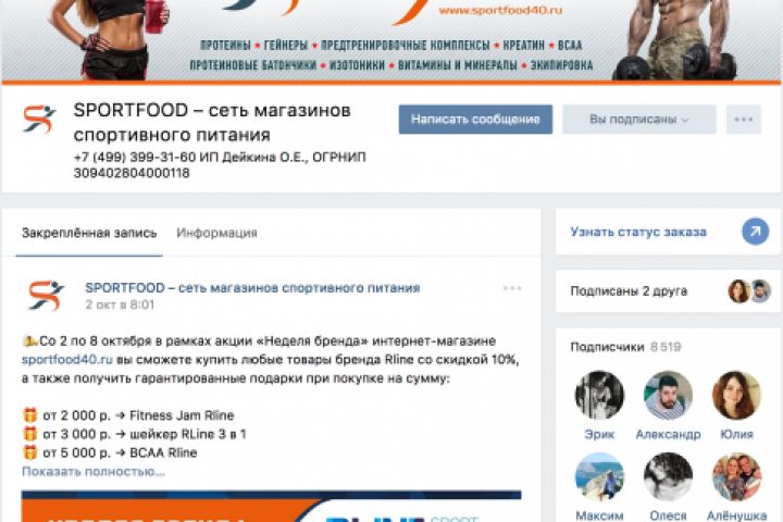 Продвижение сети магазинов спортивного питания в 3 социальных сетях: ВК, ФБ, Инстаграм.