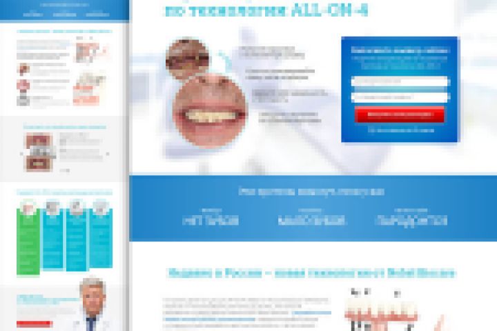 Пример Landing Page по стоматологии (имплантация зубов). Сделано: текст, прототип, дизайн, верстка.