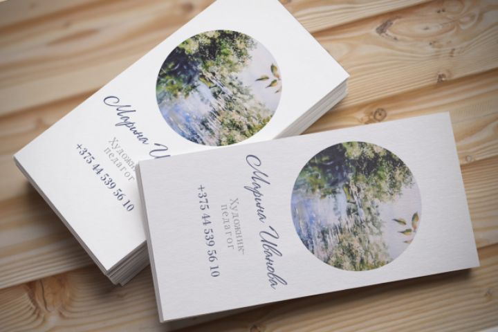 Акцентом выступил фрагмент живописной картины художницы, а изящный шрифт и белый фон подчеркнули легкость акварели.