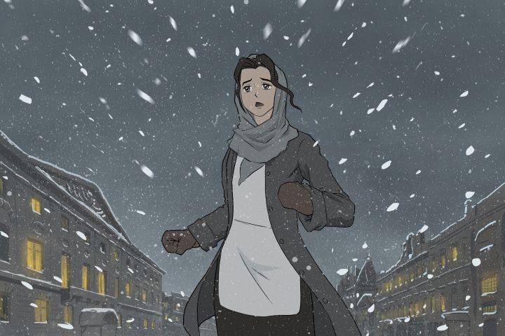 девушка бежит ночью по ночной зимней Москве в 1900 г