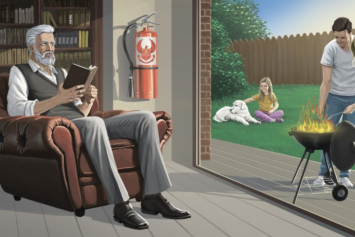 пожилой мужчина сидит в кресле с книжкой в руках.