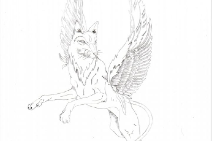 Лисица с телом львицы и крыльями пегаса, А4, механический карандаш