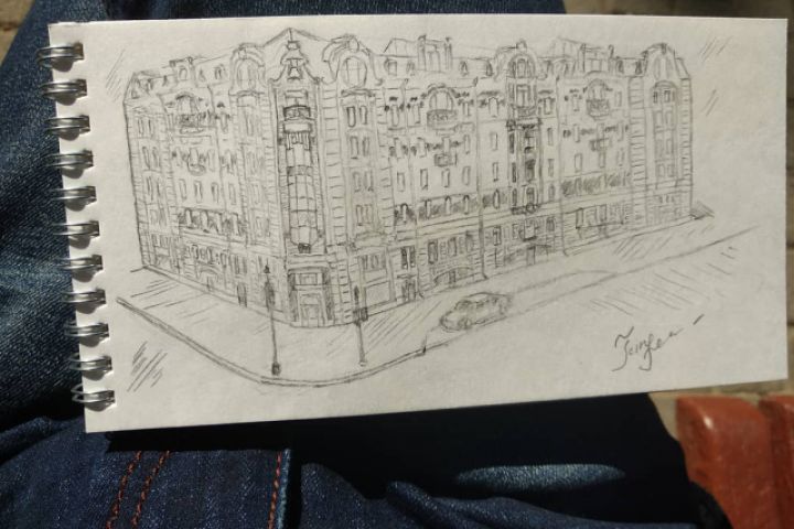 Набросок в центре города, карандаш, скетчбук
