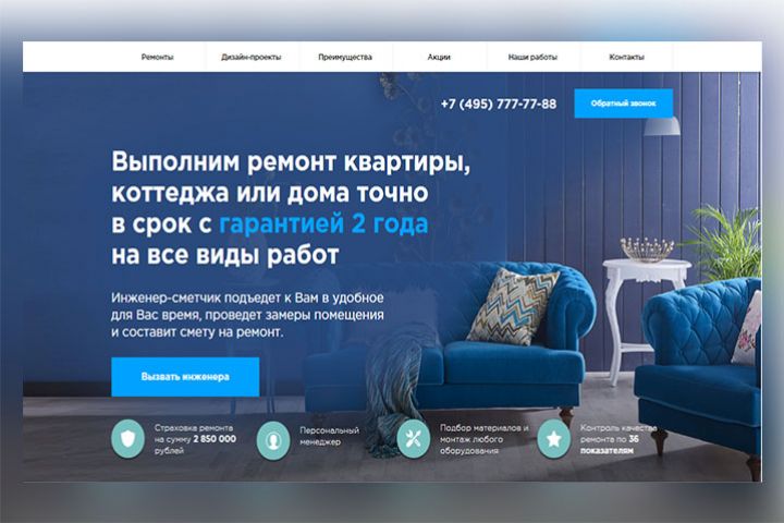 Сайт выполнен для компании Perfect Repair. специализирующейся на ремонте квартир и коттеджей.