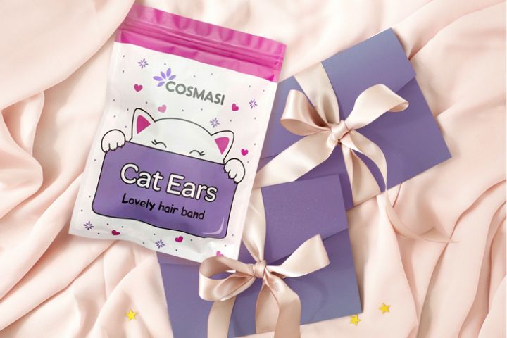 COSMASI - магазин корейской косметики. Задача: разработать дизайн упаковки в виде зип-пакета для повязки для волос. Проект реализован.