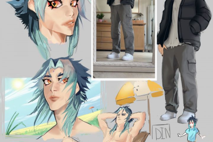 Персонаж из игры нарисованный в аниме-манга стиле. Фото одежды использовалось как референс для создания интересного сочетания фэнтезийного персонажа в одежде нашего времени