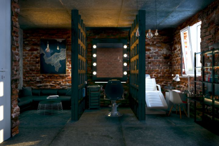 3d визуализация салона красоты в стиле Loft