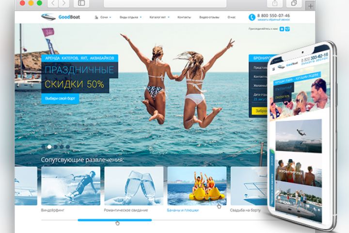 TrendPro разработали сайт под ключ для компании, специализация которой - аренда яхт, лодок, катеров, а также организация морских прогулок и других видов активного отдыха. Перед агентством стояла задача создать яркий и информативный ресурс, позволяющий подробно узнать обо всех услугах компании и связаться с менеджером для заказа.
