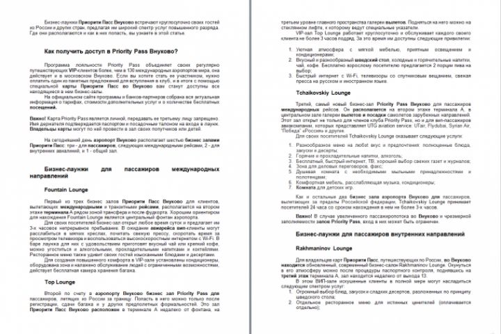 Бизнес-залы Внуково Priority Pass