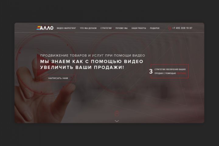 Задача: Создание одностраничного сайта в целях рекламы видео-маркетинга, относительно новой услуги по продвижению сайтов в сети через видео-канал (YouTube).