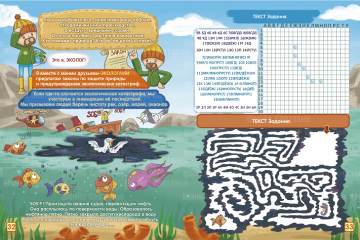 Страница книги с детскими развивающими заданиями. Книга рассказывает детям о новых, современных профессиях таких как: ТЕСТИРОВЩИК, ПРОГРАММИСТ,