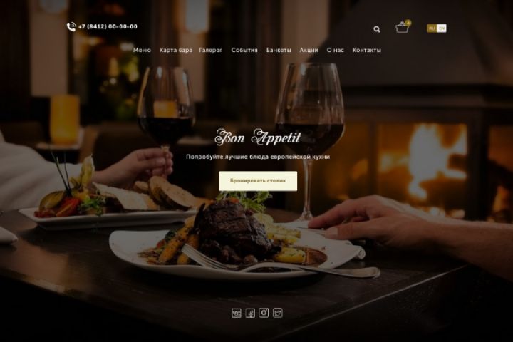 Сайт ресторана европейской кухни Bon Appetit. Полностью адаптивный дизайн под любой размер экрана
