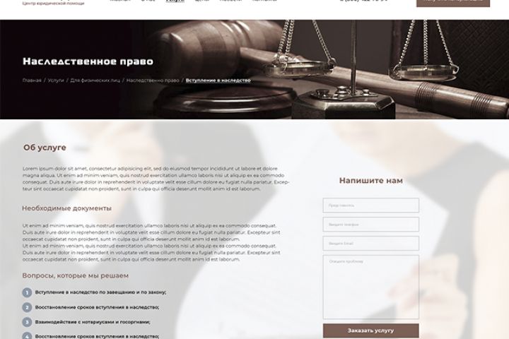 Агентство юридических услуг, внутренняя страница сайта