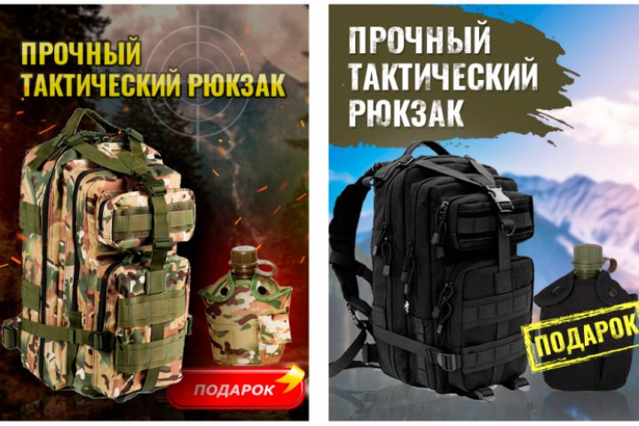 Дизайн баннеров для рекламной компании в рекламной сети Яндекс. Было создано 2 баннера по продаже рюкзаков с размерами 450х594 px.