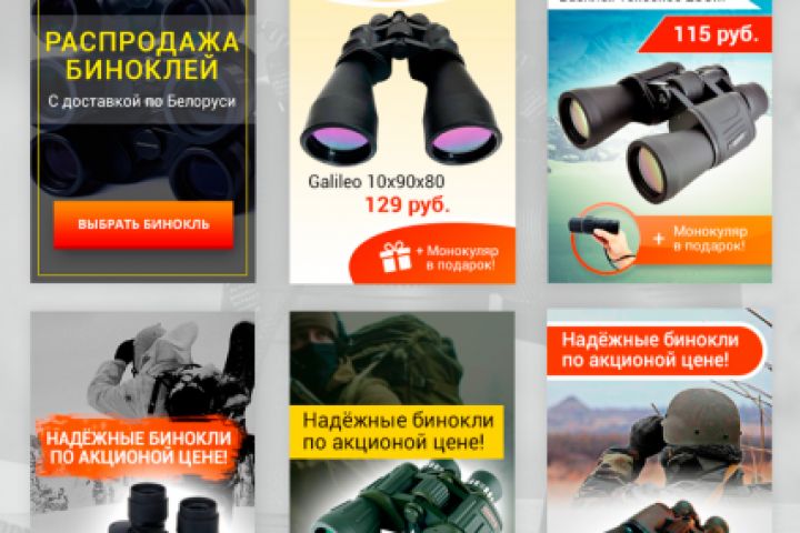Заказ на изготовление 6 баннеров для рекламной компании в поиске Яндекс. Размеры баннеров 240 x 400 px.