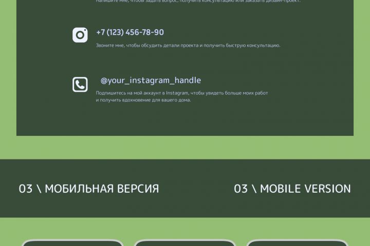 Мобильная версия лендинга по дизайну интерьеров.