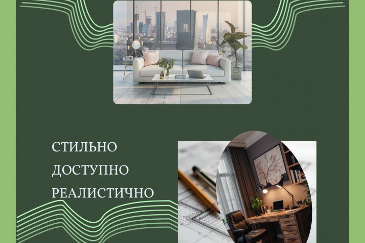 Лендинг для дизайнера интерьеров. Первые 3 экрана десктоп-версии, часть экранов мобильной версии. Иллюстрации для лендинга созданы нейросетью.