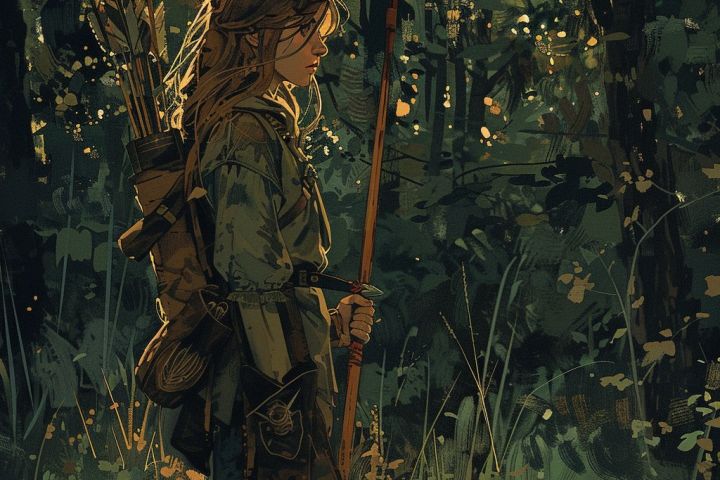 Охотница в лесу и горный пейзаж. Работы сделаны в нейросети.