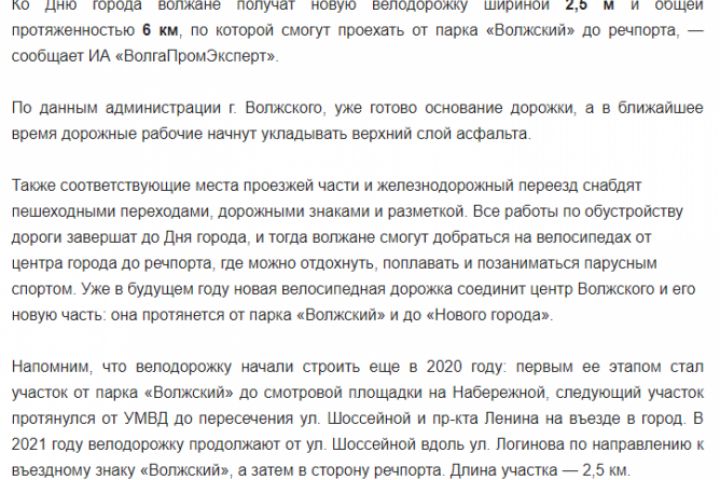 Новостная статья для сайта ИА «ВолгаПромЭксперт» о благоустройстве г. Волжского