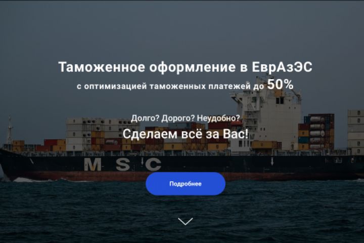 Сайт для Таможенных брокеров! Задача: Разработать сайт для таможенных брокеров, который бы отличался от остальных простатой и эстетическим восприятием! В качестве движка использовалась Тильда
