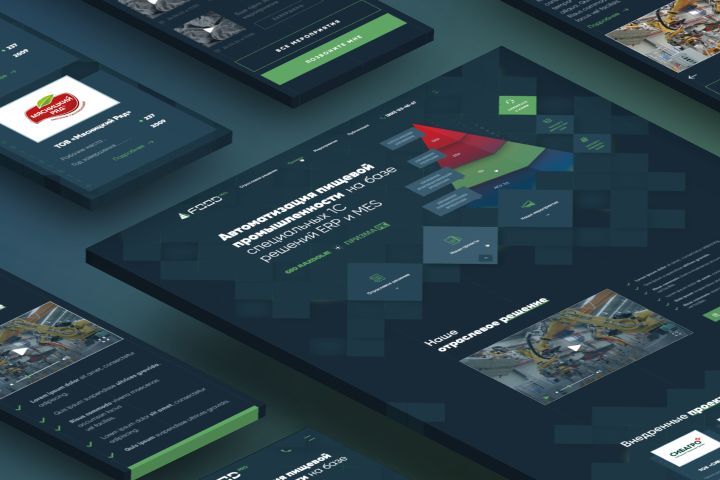 Разработка сайта "под ключ" с индивидуальным дизайном. Сайт посвящен отраслевому решению на базе 1С:ERP для автоматизации предприятия пищевой промышленности.