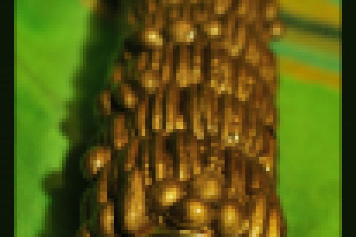 Стеклянный шар, зеркала, картонный цилиндр, косточки фруктов, золотая краска, лак.