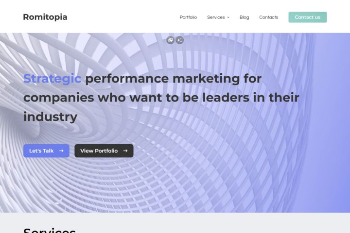 Верстка многостраничного сайта Romitopia с настрой формы обратной связи и загрузкой на хостинг