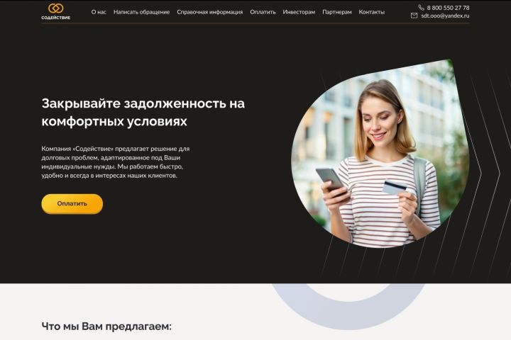 Проект выполнен для юридической компании из Нижнего Новгорода — партнёра, обратившегося ко мне повторно, после успешного предыдущего сотрудничества. Требовалось переработать сайт в многофункциональную платформу: понятную для граждан, столкнувшихся с долгами, и прозрачную для инвесторов — с акцентом на объяснение юридических процессов и визуализацию доходности через встроенный калькулятор инвестиций.