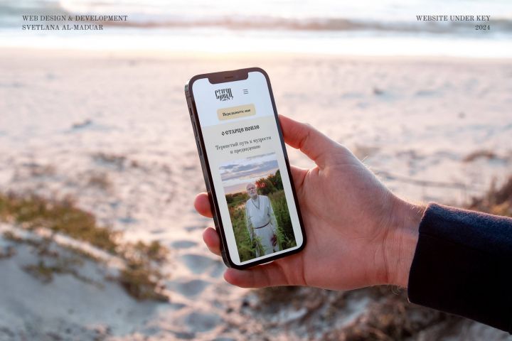 Необычный проект — создание сайта, который будет восприниматься как личный «бренд» духовного наставника. Сайт построен как портал о старцах, с цитатами, историями, чудесами — чтобы заказчик («старец Иоиль») вписался в этот контекст. Я помогла профессиональному психологу создать визуальный мир, где его опыт и знания становятся частью духовной традиции — без потери сути, но с новой формой подачи.