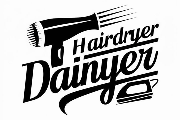 Было ТЗ создать логотип в черно-белом стиле, используя латинский текст, прибор для сушки волос и нагревательную технику.