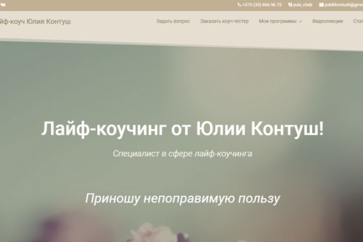 Небольшой сайт для предпринимателя, оказывающего услуги коучинга.