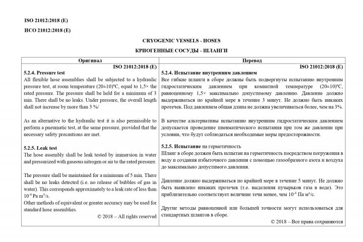 Стандарт ИСО 21012:2018 Криогенные сосуды - шланги 2023