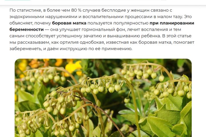 Статья о применении препаратов боровой матки в лечении бесплодия у женщин. Здесь я подробно рассматриваю гормональные и воспалительные причины и объясняю, каким образом боровая матка помогает справиться с этими проблемами. Источники: учебники по гинекологии, современные научные статьи, исследования. Даже в работе с народными средствами я строго придерживаюсь принципов доказательной медицины.