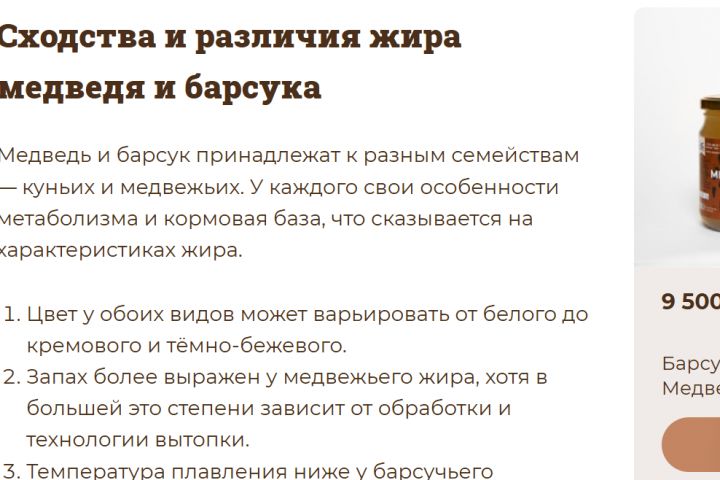 Сравнительный обзор двух видов жиров зимоспящих животных для авторского блога. Источники: исследования, опубликованные в российских и зарубежных медицинских журналах, учебники и научные статьи. По сути, в процессе сравнения провела собственное исследование. Статья получилась информативной, достоверной, а значит, и полезной. Текст SEO-оптимизирован.