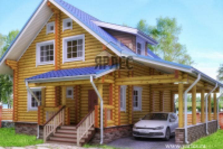 Деревянный дом из оцилиндрованного бревна. Архитектурный проект. Общая площадь: 211 м2