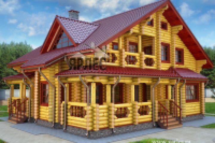 Деревянный дом из оцилиндрованного бревна. Архитектурный проект. Общая площадь: 220,6 м2