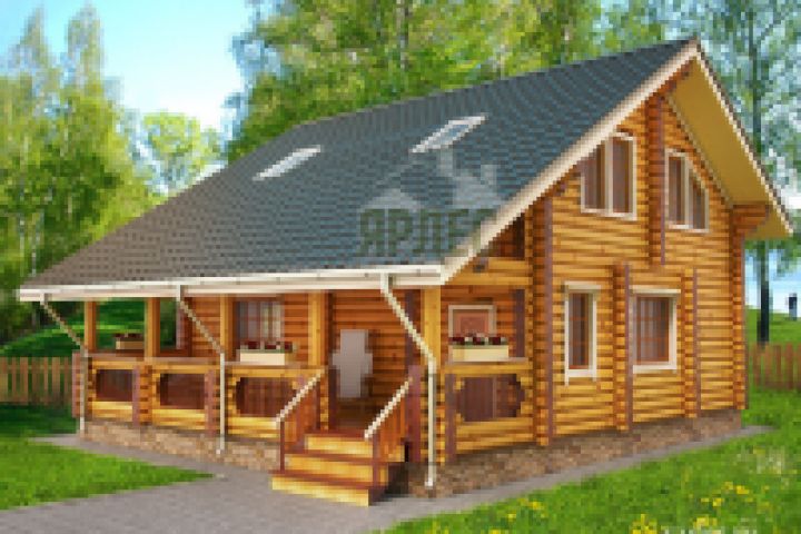 Деревянный дом из оцилиндрованного бревна. Общая площадь: 159,5 м2