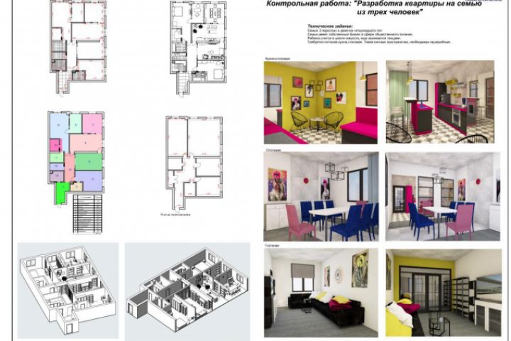 Квартира для активной, творческой семьи с ярким дизайном.