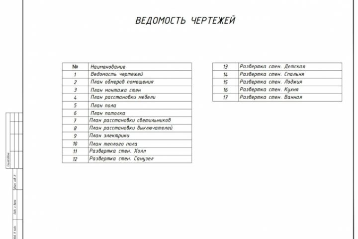 Ведомость чертежей