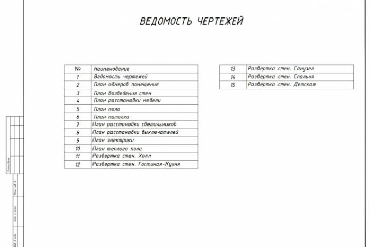 Ведомость чертежей