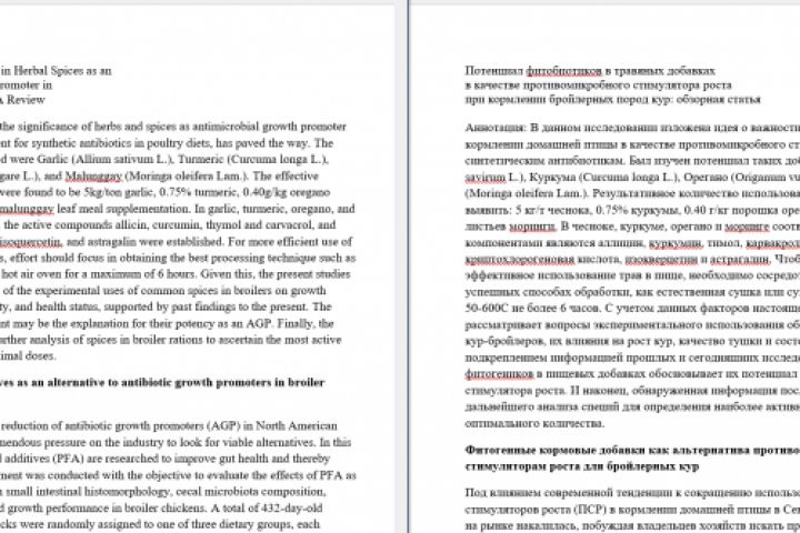 Перевод аннотаций к научным статьям по кормлению кур различными пищевыми добавками