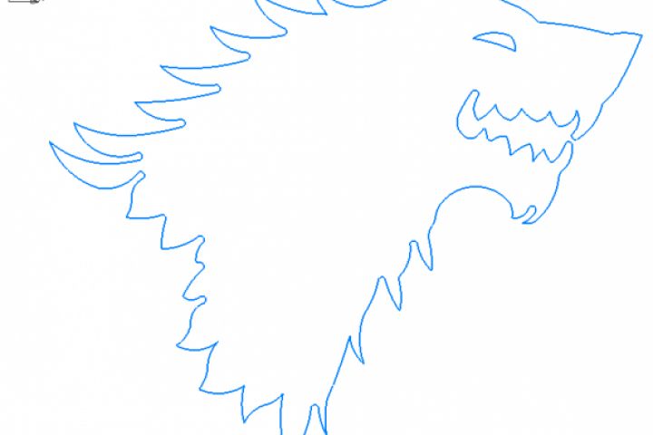 герб дома Старков из Игры Престолов было сделано в КОМПАСЕ и вырезано на гидрорезке на листе металла (обработка на гидрорезке не входит в услуги)