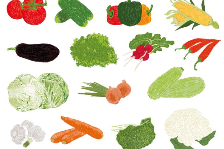 Овощи, нарисованы мелом на планшете (вектор)