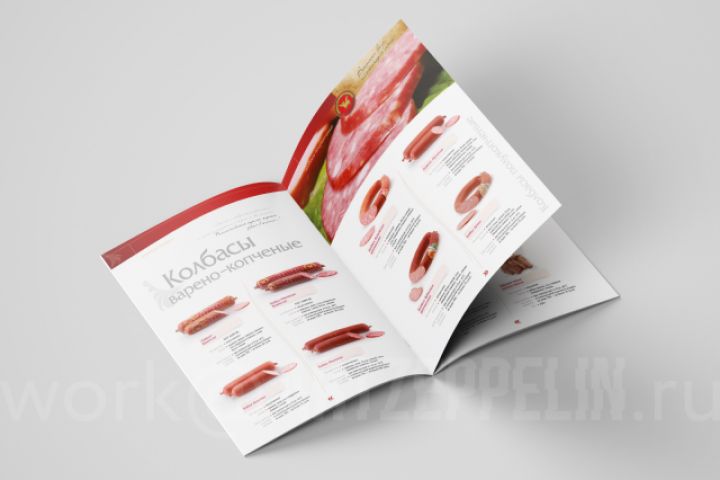 Особенность каталога: Каждый раздел, например, "вареные колбасы" или "деликатесы" начинается с цитаты произведения "Лето Господне" Ивана Шмелева. В ней упоминается тот или иной вид продукции из представленной линейки.
