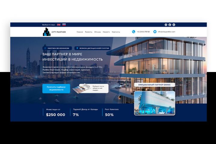 Создал современный и удобный сайт для бизнеса в сфере недвижимости Дубая — идеальный инструмент привлечения клиентов и повышения доверия партнеров. Теперь объекты представлены профессионально, легко находятся в поиске, а потенциальные покупатели смогут быстро ознакомиться с предложениями и связаться. Сайт оптимизирован для мобильных устройств, интуитивно понятен и поддерживает мультиязычность, обеспечивая комфортное взаимодействие с международной аудиторией.