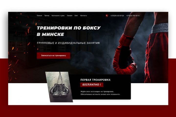 Представляем готовый лендинг под ключ для тренировок по боксу, отличающийся уникальным и притягательным дизайном.