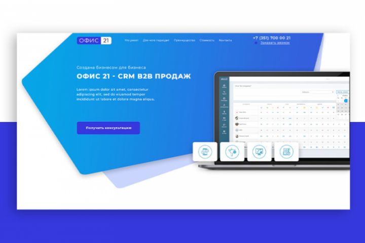 Дизайн для крупной crm системы Офис 21 . Был разработан дизайн в стилистике, которую запросил клиент по примерам. После успешного дизайна главной стр. были сделаны и остальные доп. стр.